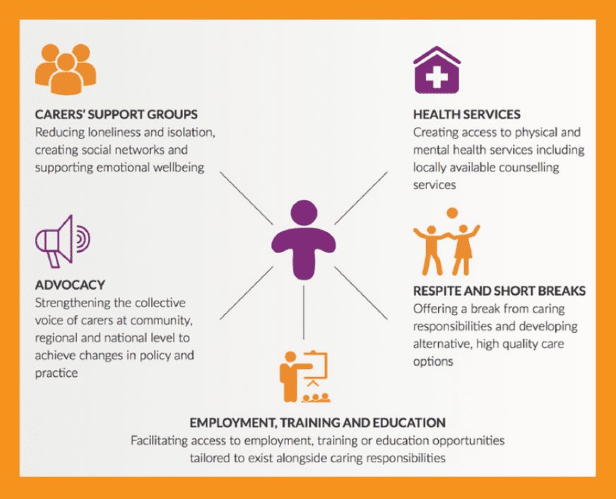 - Implementing services at a local level that directly support carers, and ensuring the services become enshrined in policy